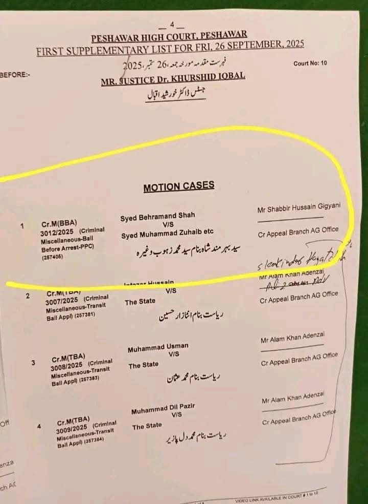 چارسدہ وکیل قتل کیس: نامزد ایس ایچ او بہرہ مند شاہ کو تین اکتوبر تک عبوری ضمانت